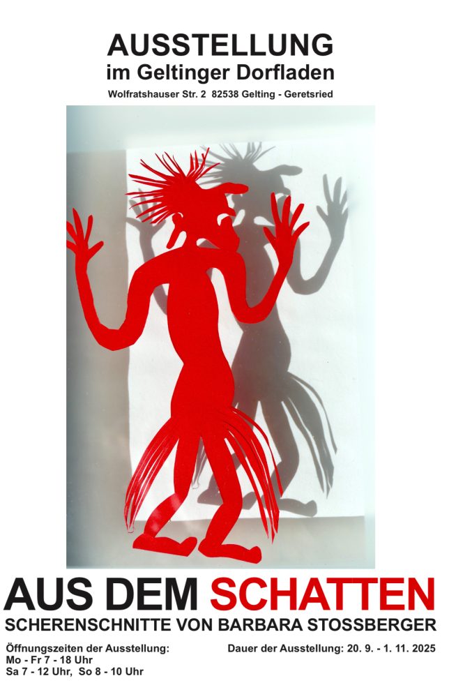 Ankündigung der Ausstellung mit Scherenschnitten von Barbara Stossberger
