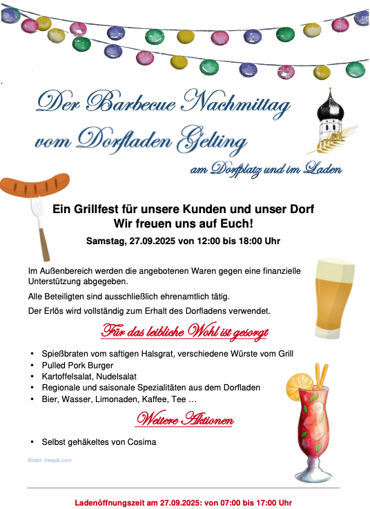 Der Dorfladen bleibt geöffnet bis 17°° Uhr!