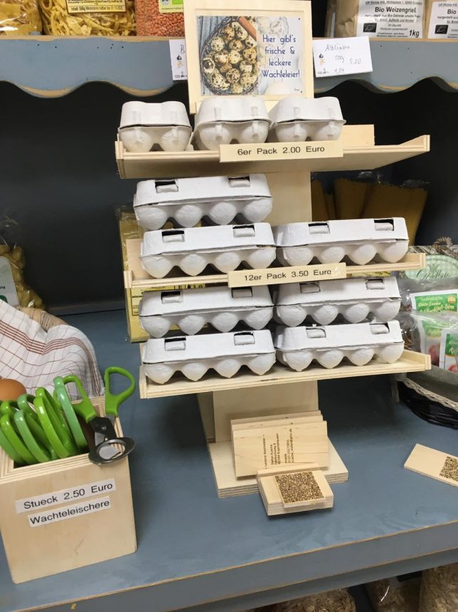 Außerdem haben wir diverse neue Produkte im Angebot – Wachteleier und -zangen aus Egling, Geschenkboxen vom Starnberger Brauhaus, diverse Artikel aus der Manufaktur von Dana Weidner – und die beliebten Weihnachtsplatzerl von der Angermühle!
